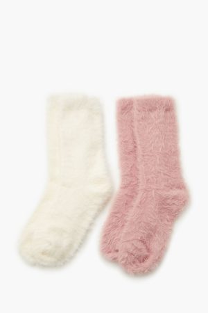 Fuzzy Knit Crew Socks – 2 pack