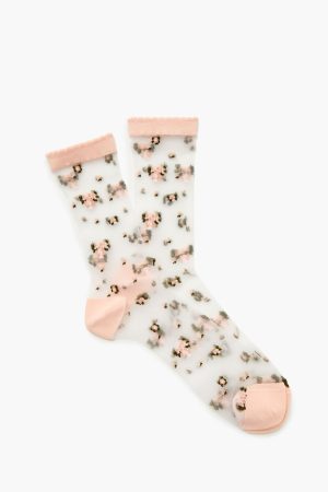 Flower Print Mesh Crew Socks