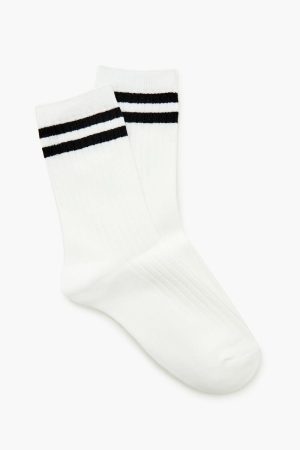 Ribbed Varsity-Striped Crew Socks