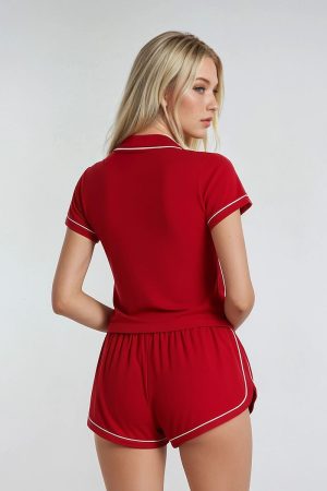 Piped-Trim Top & Shorts Pajama Set