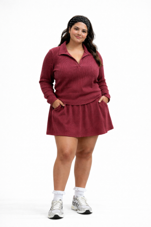 PLUS SIZE RIBBED LONG SLEEVE POLO AND SKORT SET