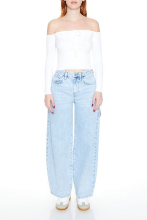 Off-The-Shoulder Tie-Front Sweater Top