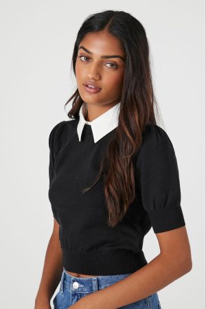 Sweater-Knit Collar Crop Top