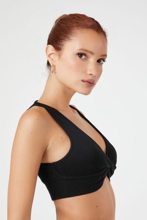 Sweater-Knit Twist-Front Crop Top