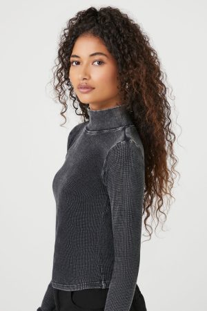 Waffle Knit Turtleneck Top