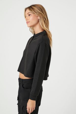 Waffle Knit Long-Sleeve Top