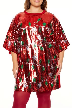 Plus Size Sequin Christmas Lights T-Shirt Dress