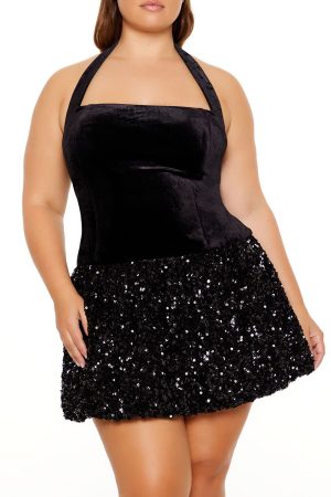 Plus Size Sequin Halter Mini Dress