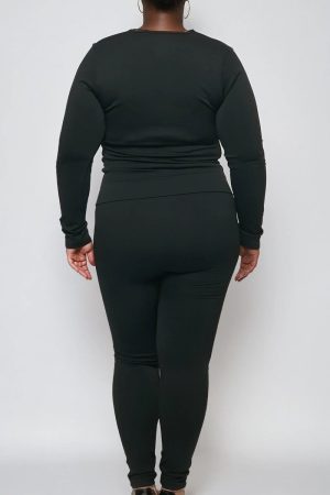 Plus Size Seamless Long-Sleeve Top & Leggings Set