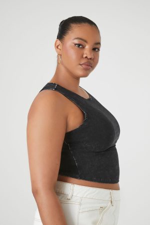 Plus Size Eyelash Lace-Trim Floral Crop Top