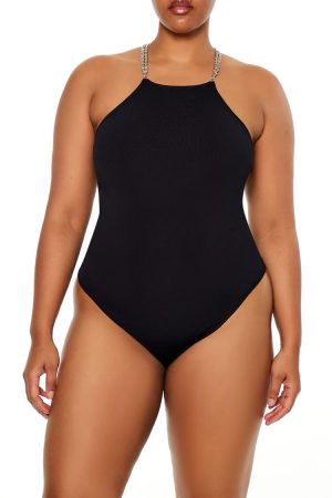 Plus Size Faux Gem Sweater-Knit Bodysuit