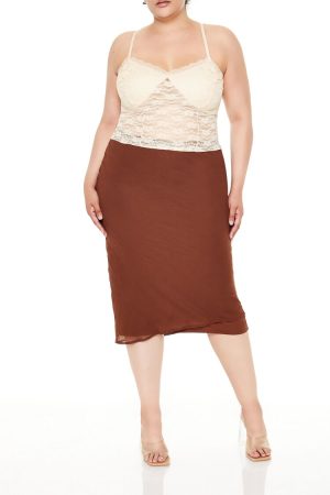 Plus Size Sheer Cap-Sleeve Lace-Trim Top
