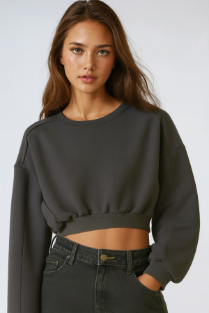 Exposed-Seam Cropped Pullover