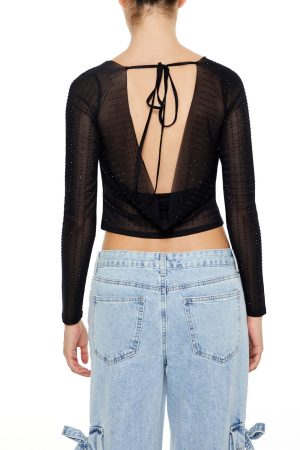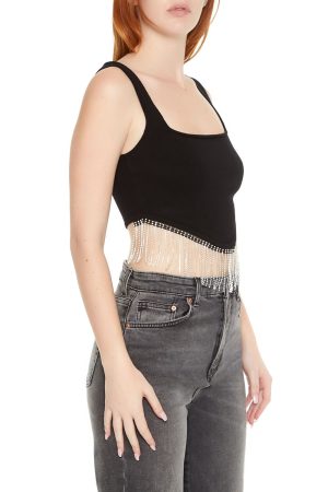 Rhinestone Sweater-Knit Crop Top