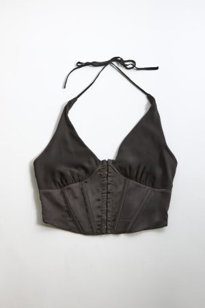 Satin Halter Corset Crop Top