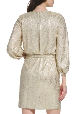 Longsleeve Pleated Neck Blouson Dress Champagne