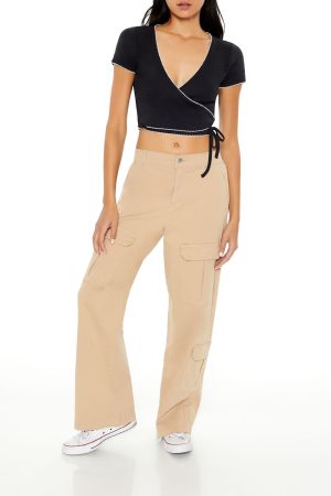 Pointelle Cropped Wrap Top