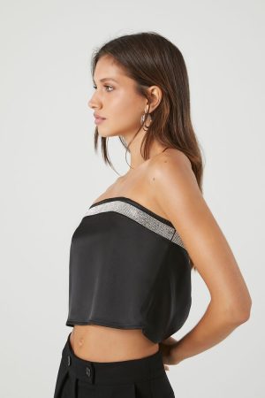 Rhinestone Strapless Crop Top