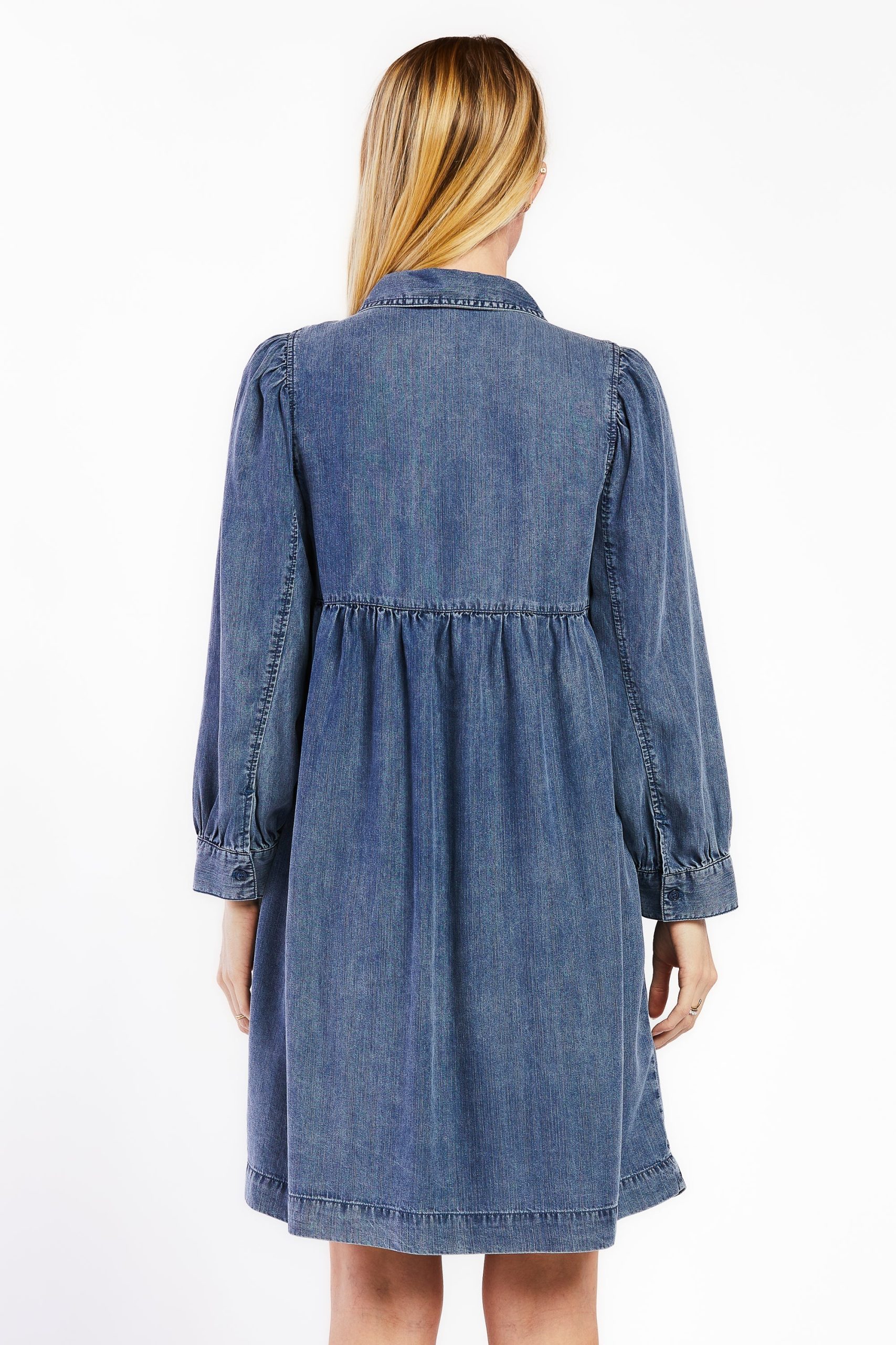 7/8 Cuffed Balloon Sleeve Popover Baby Doll Dress