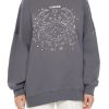 A fleece pullover featuring ribbed trim. chest ‘Capricorn’ embroidered text. a metallic beaded goat front graphic. rhinestone and faux pearl front embellishments. and dropped long sleeves.