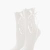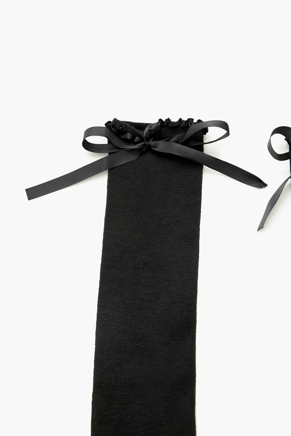 A pair of knit over-the-knee socks featuring a satin bow embellishment and lettuce-edge trim.