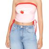 Allover cherry embroidery adds a playful. textured pattern