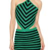 Mix and match your favorite swimwear with this pair of knit bikini bottoms that features a low-rise waist. high-leg design. chevron print trim. and a Brazilian cut.