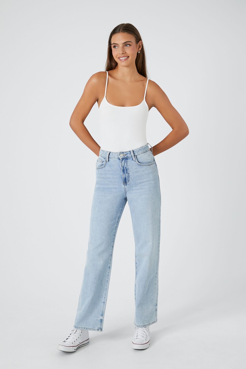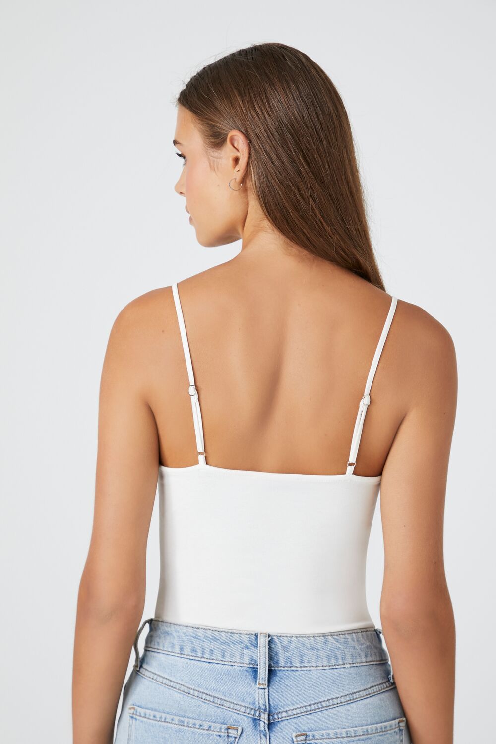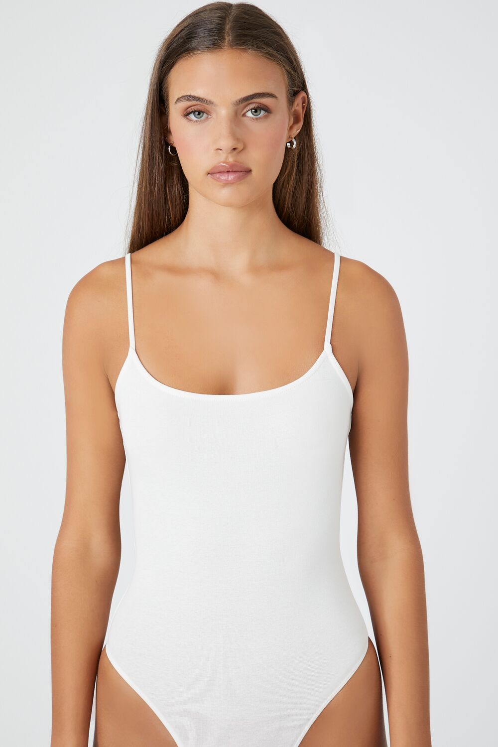 A cotton-blend knit bodysuit featuring a straight-cut neckline and back and adjustable cami straps.