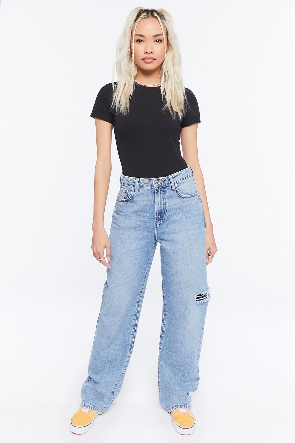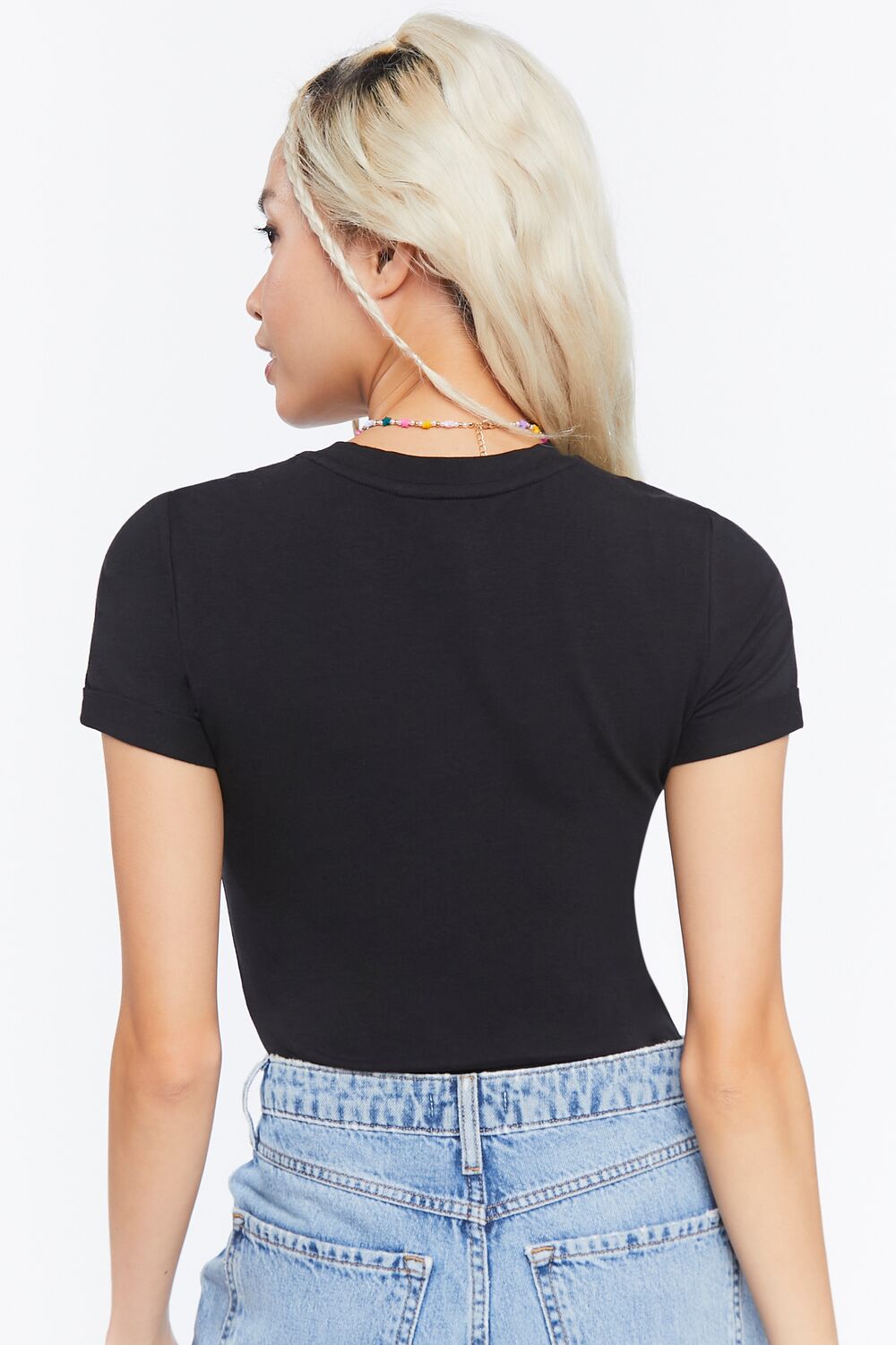 Style Deals – A knit bodysuit featuring a crew neck. short cuffed sleeves. full-coverage bottom. and snap-button closures.