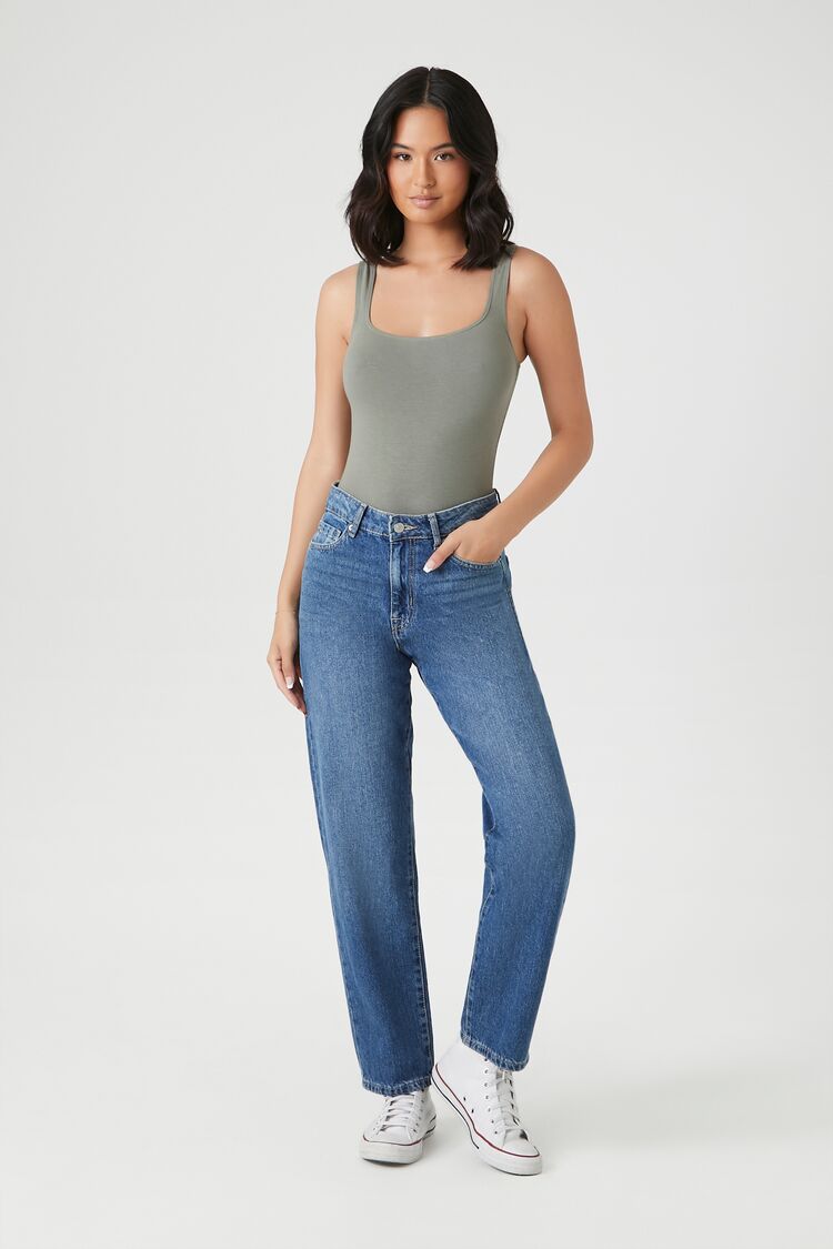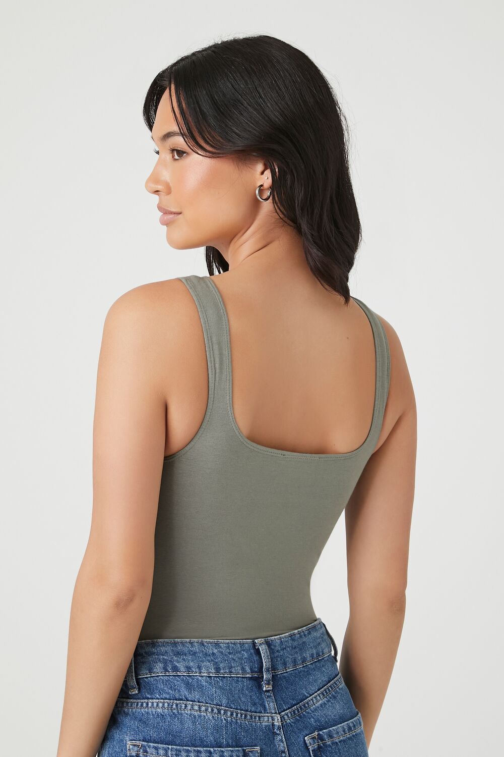 Crafted from cotton. this knit bodysuit features a square-cut neckline and back. and shoulder straps.