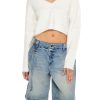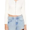 A woven vest featuring a basic collar. zip-up front closure. ribbed trim. chest zip pockets. and a cropped hem.