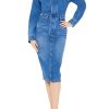 A denim cami featuring a straight-cut neckline and back. fixed cord straps. a cropped silhouette. and curved hem.