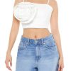 A mesh combo top featuring an off-the-shoulder neckline. denim print. long sleeves. and reworked design with contrasting bust with ruched details.