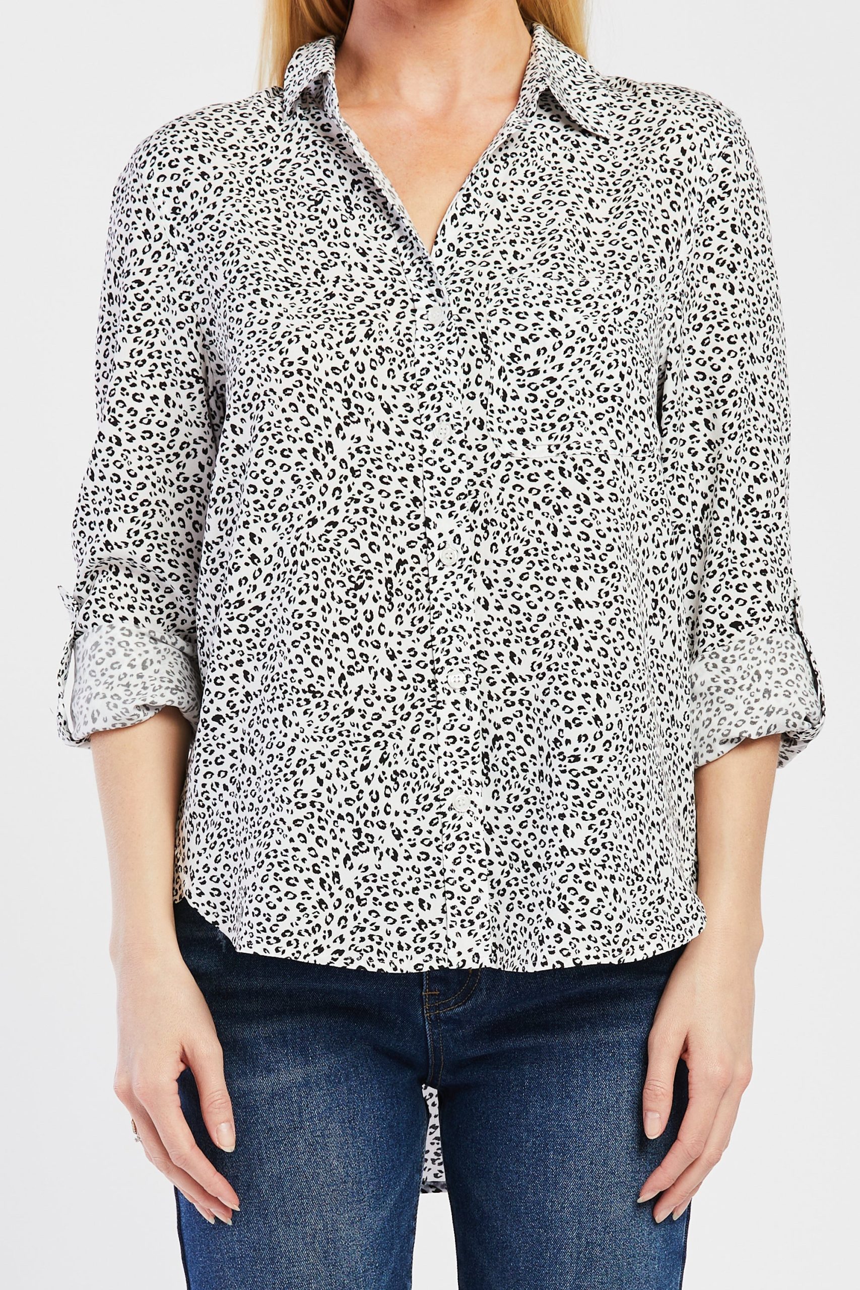Elisa Tab Sleeve Button Down Shirt Single Chest Pocket