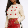 A woven crop top featuring a surplice halter neckline with a self-tie closure. contrasting embroidery. and an open back.