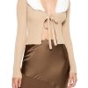 Cropped bolero sweater with plush faux fur trim at collar and long-sleeve cuffs