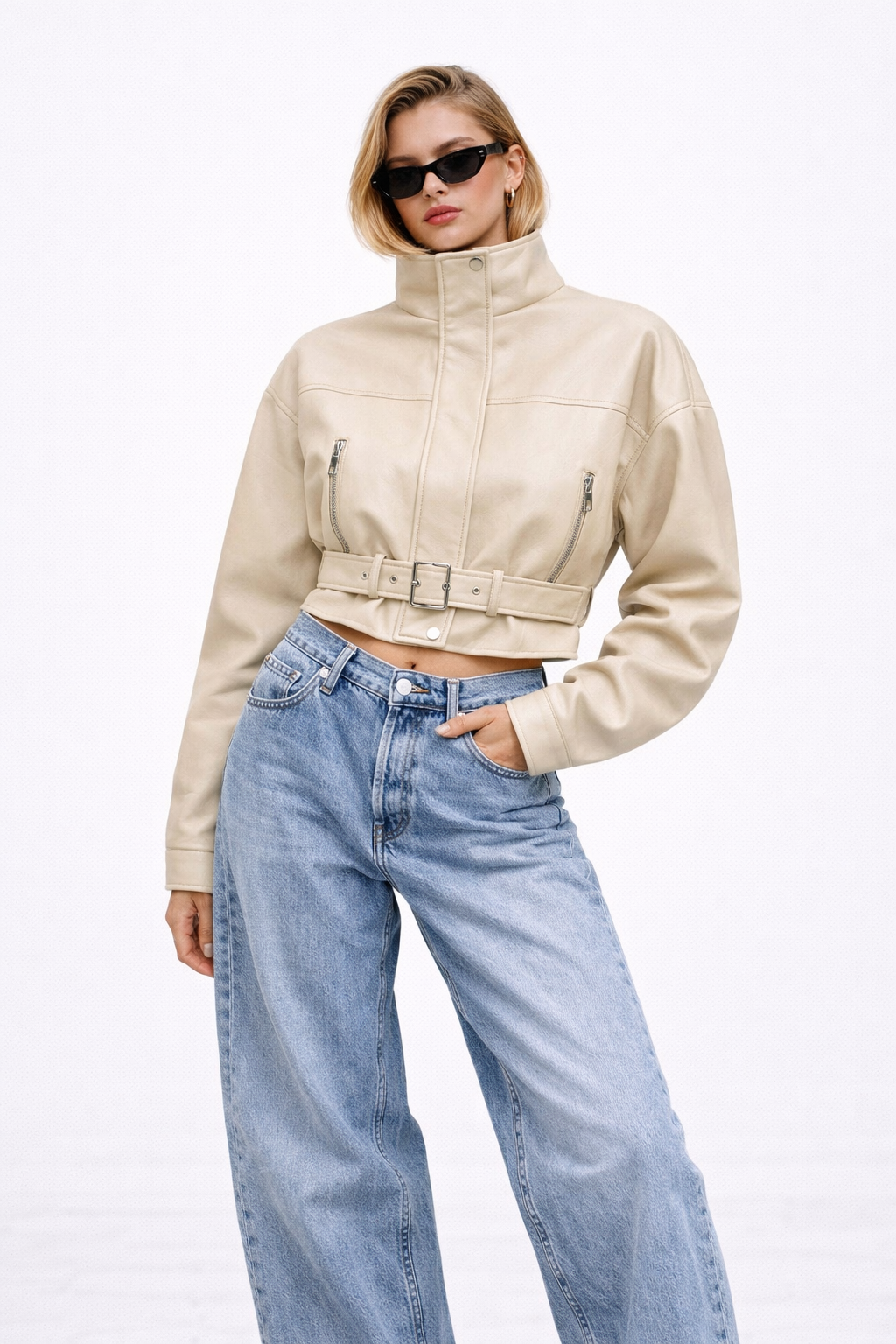 Cropped silhouette with an adjustable belted waist