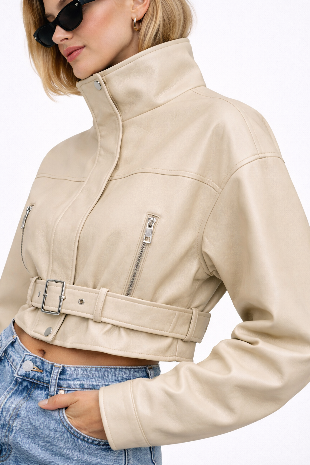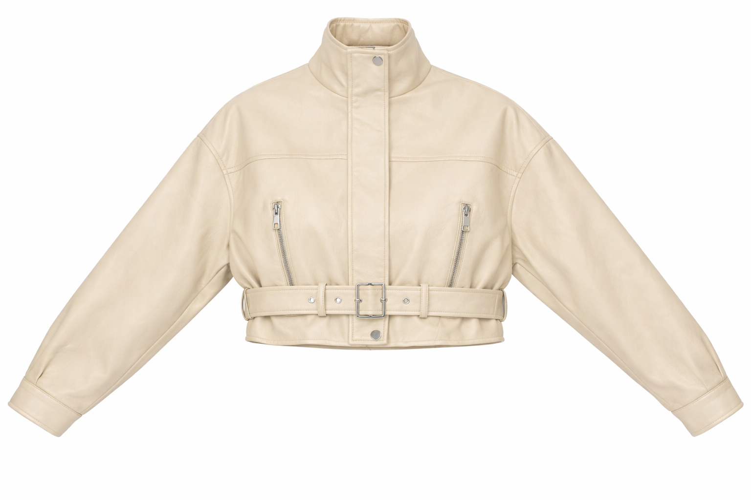 Faux Leather Belted Cropped Jacket