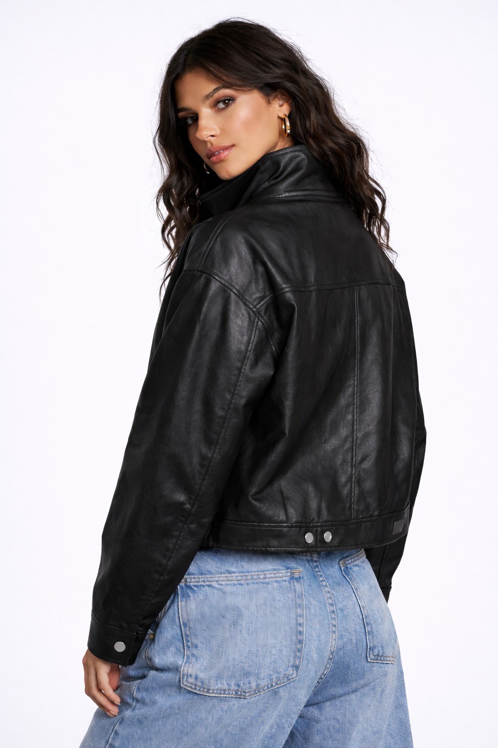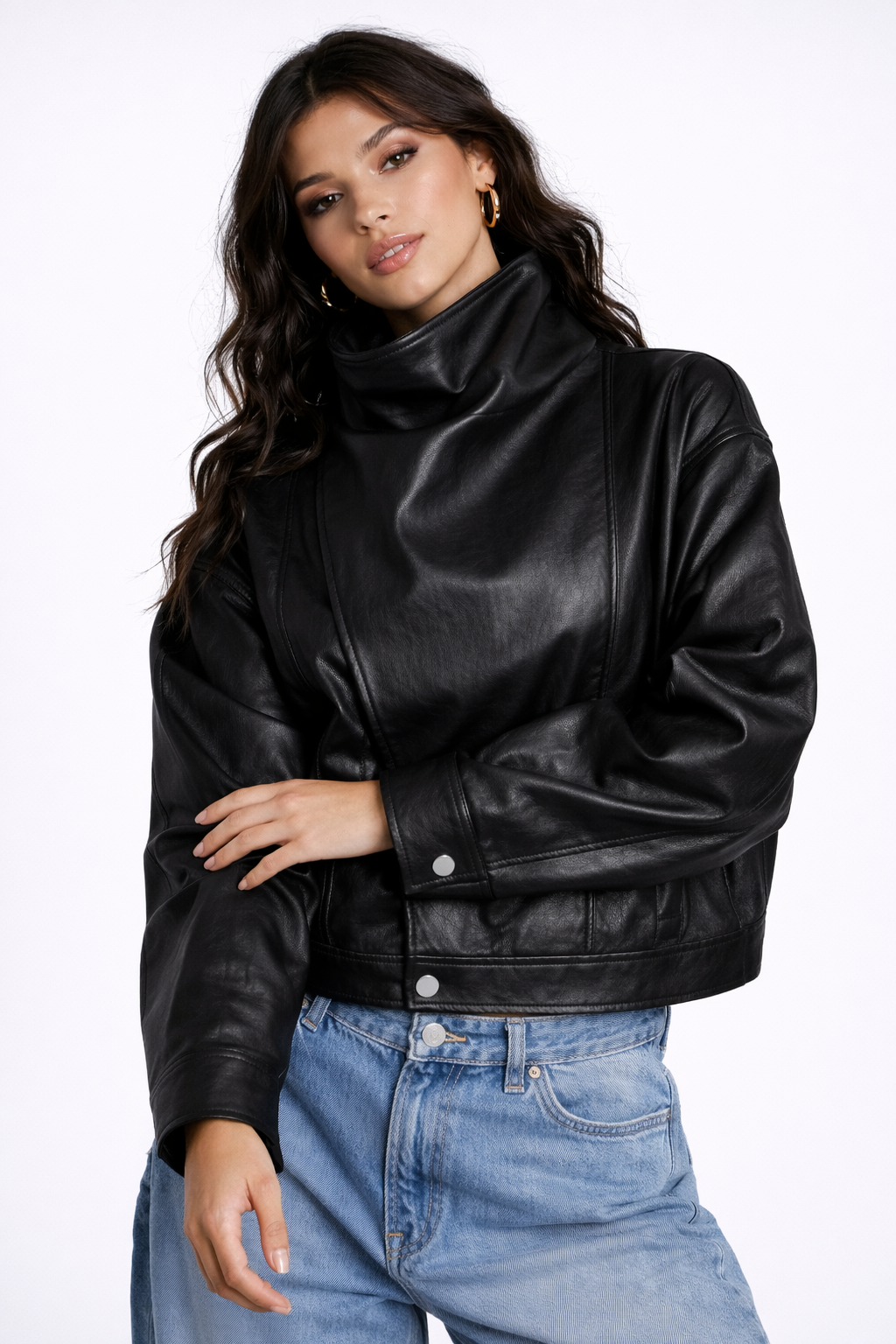 Faux Leather Funnel Neck Jacket