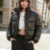 Faux Leather Rhinestone-Fringe Mini SkirtFaux Leather Rhinestone-Fringe Mini Skirt