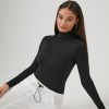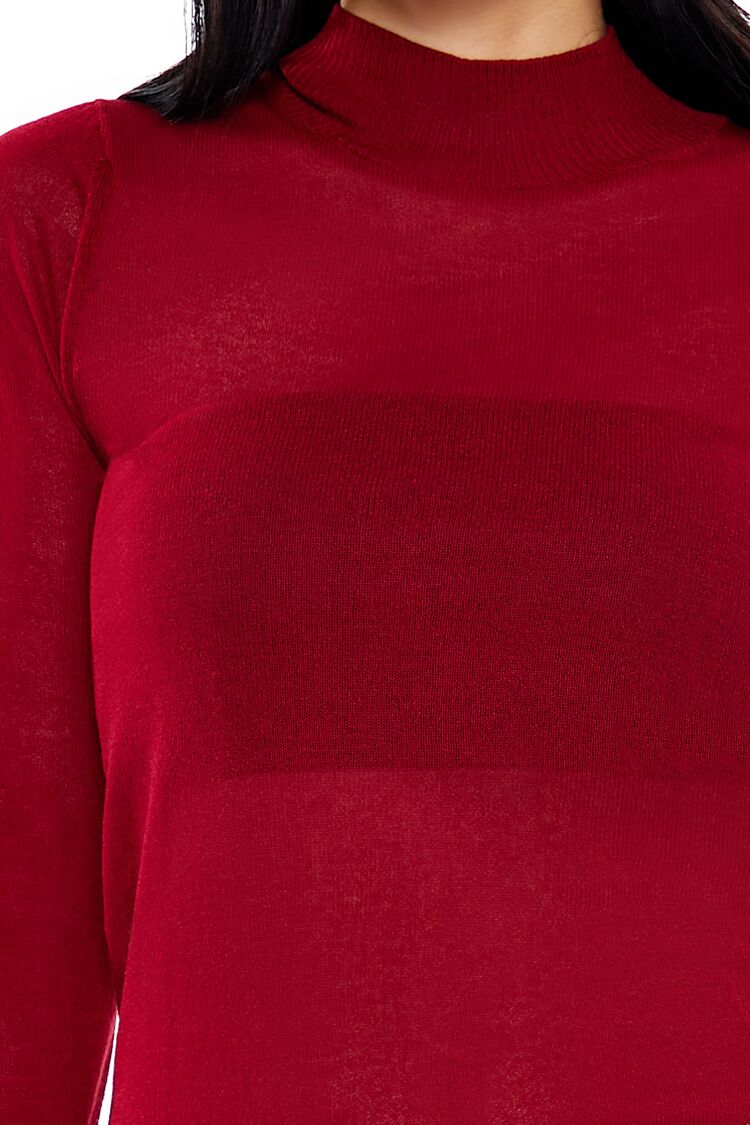 A knit sweater featuring long sleeves. mock neck. fitted silhouette. and a semi-cropped hem.