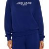 A fleece top featuring front ‘New York’. ‘Premium Goods’. and ‘1990’ text. dropped long sleeves with heart graphics. a crew neck. and cropped hem.