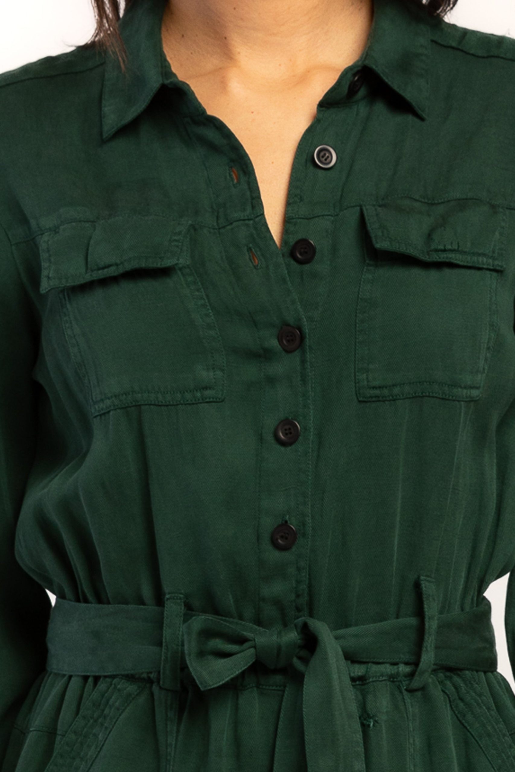 Frenzia Long Sleeve Utility Style Jumpsuit Button Down Tab Cuff Hem Self Belt
