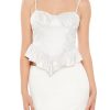 A fleece pullover featuring ribbed trim. front ‘No Hard Feelings’ glitter text. dropped long sleeves. and an oversized fit.