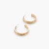 A set of high-polish hoop earrings featuring an open-ended construction. geometric designs. and hammered and smooth finishes. all complete with post-back closures.
