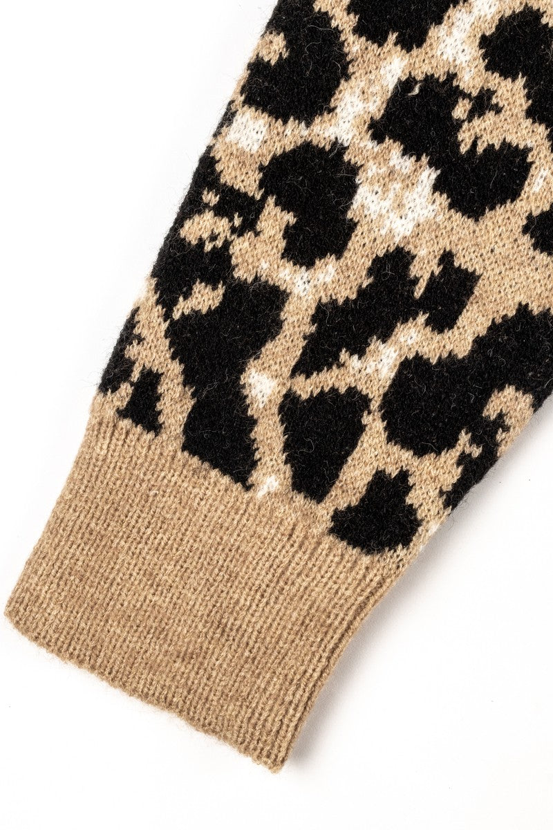 • Knit cardigan sweater featuring an all-over leopard print