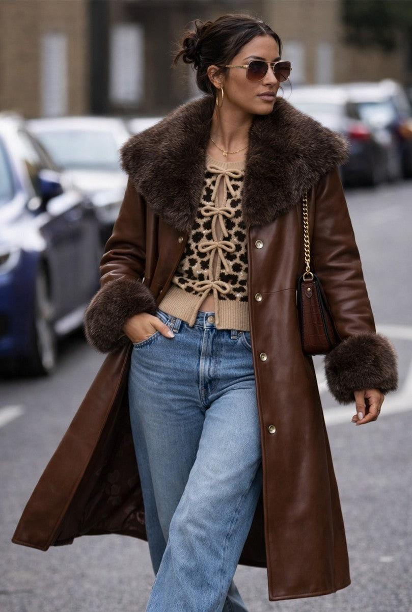 Leopard Lace-Up Bow Cardigan SweaterLeopard Lace-Up Bow Cardigan Sweater