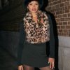 Crafted from faux fur with a bold leopard pattern for a plush. statement-making finish