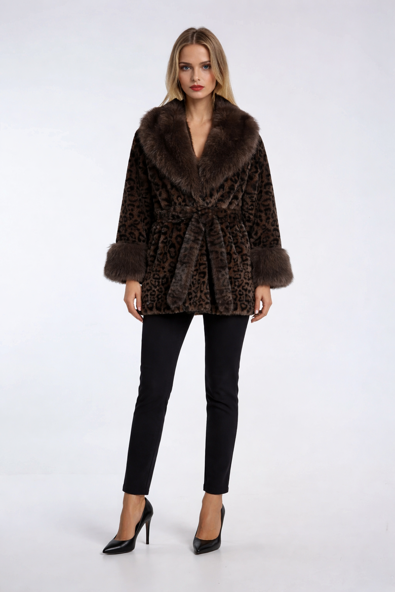 Leopard Print Tie-Waist Faux Fur Jacket
