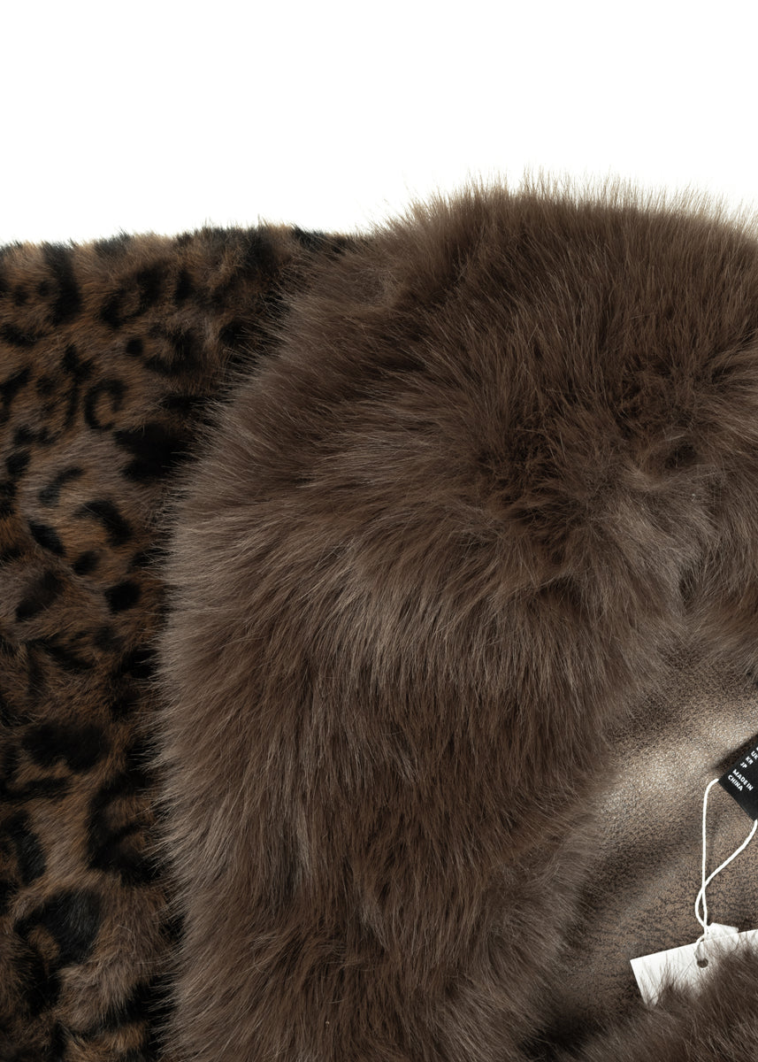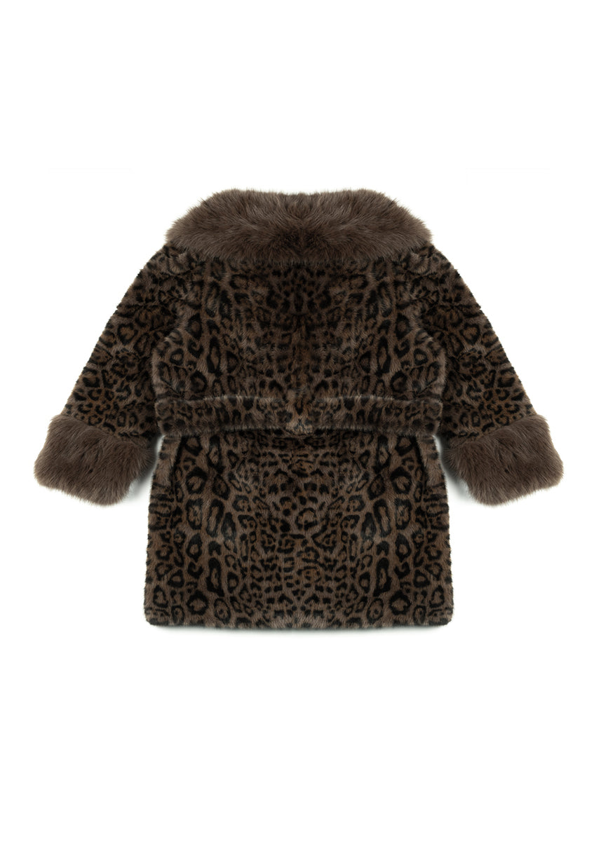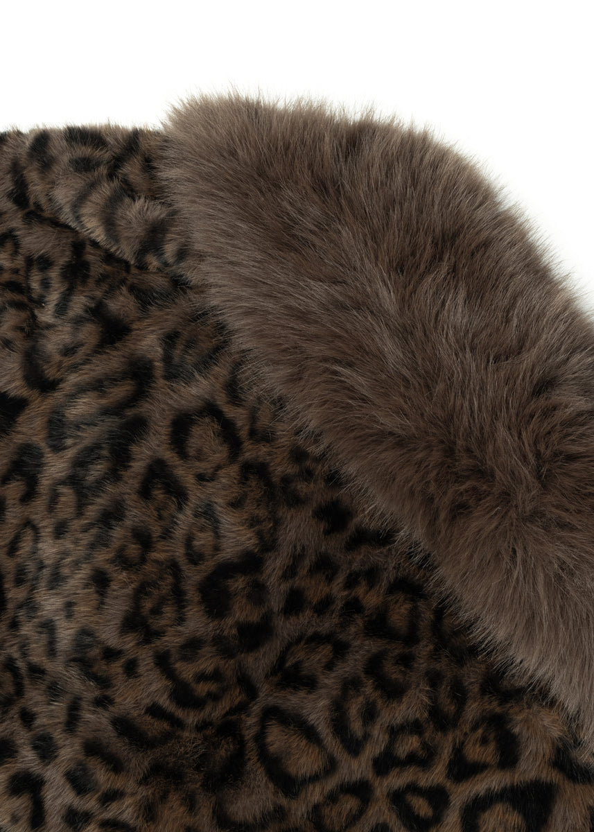 Plush faux fur jacket with allover leopard print